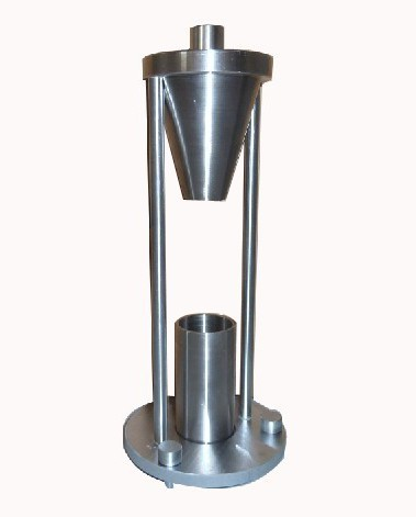 (4)用塞棒塞住漏斗流出口。將塵樣裝入盛樣量筒,用刮片刮平后倒入漏斗中。