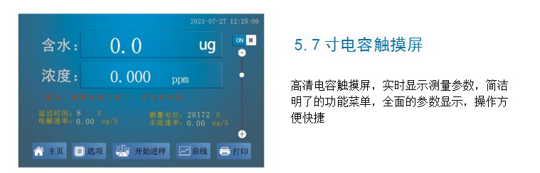 4、自動(dòng)扣除漂移,自動(dòng)檢測(cè)載氣中水分,可配合卡氏加熱爐測(cè)試難溶樣品